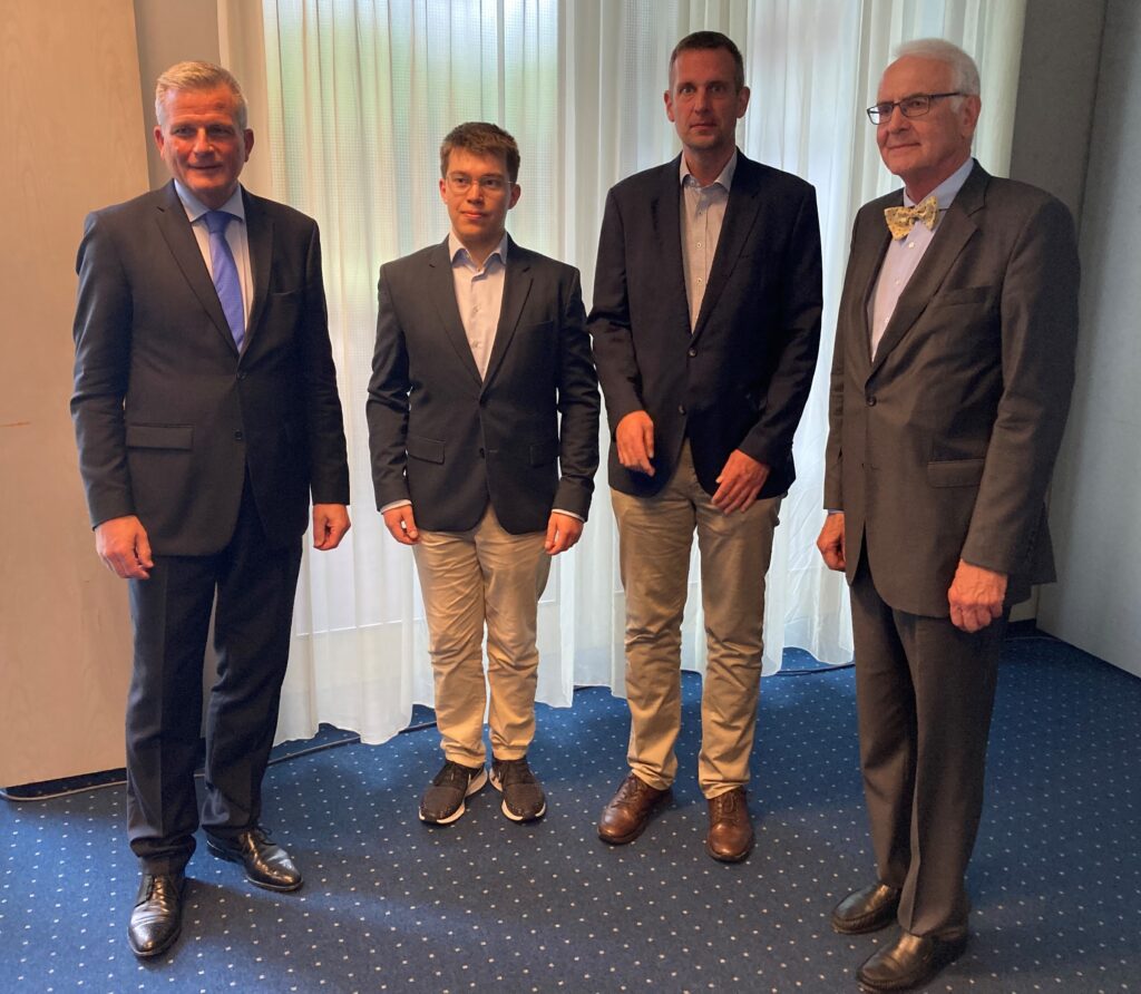 (v. l. n. r.) Präsident Christian Geigle, Leon Bernhard, Dr. Leif Kramp, Peter Sem