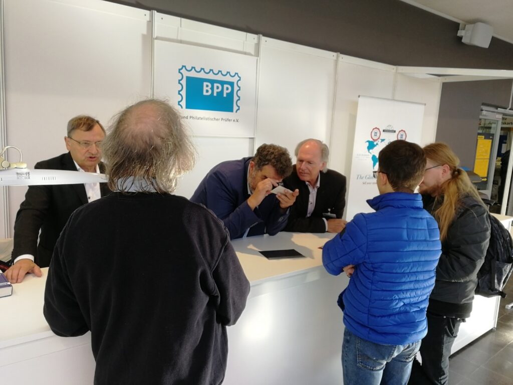 Die große Anzahl von Beratungen an den drei Messetagen zeigte das große Interesse der Besucher an diesem kostenlosen Service des Bundes Philatelistischer Prüfer e. V., der von der Messeleitung mit der Bereitstellung eines ideal gelegenen Standes direkt am Eingang zur Messehalle unterstützt wurde.